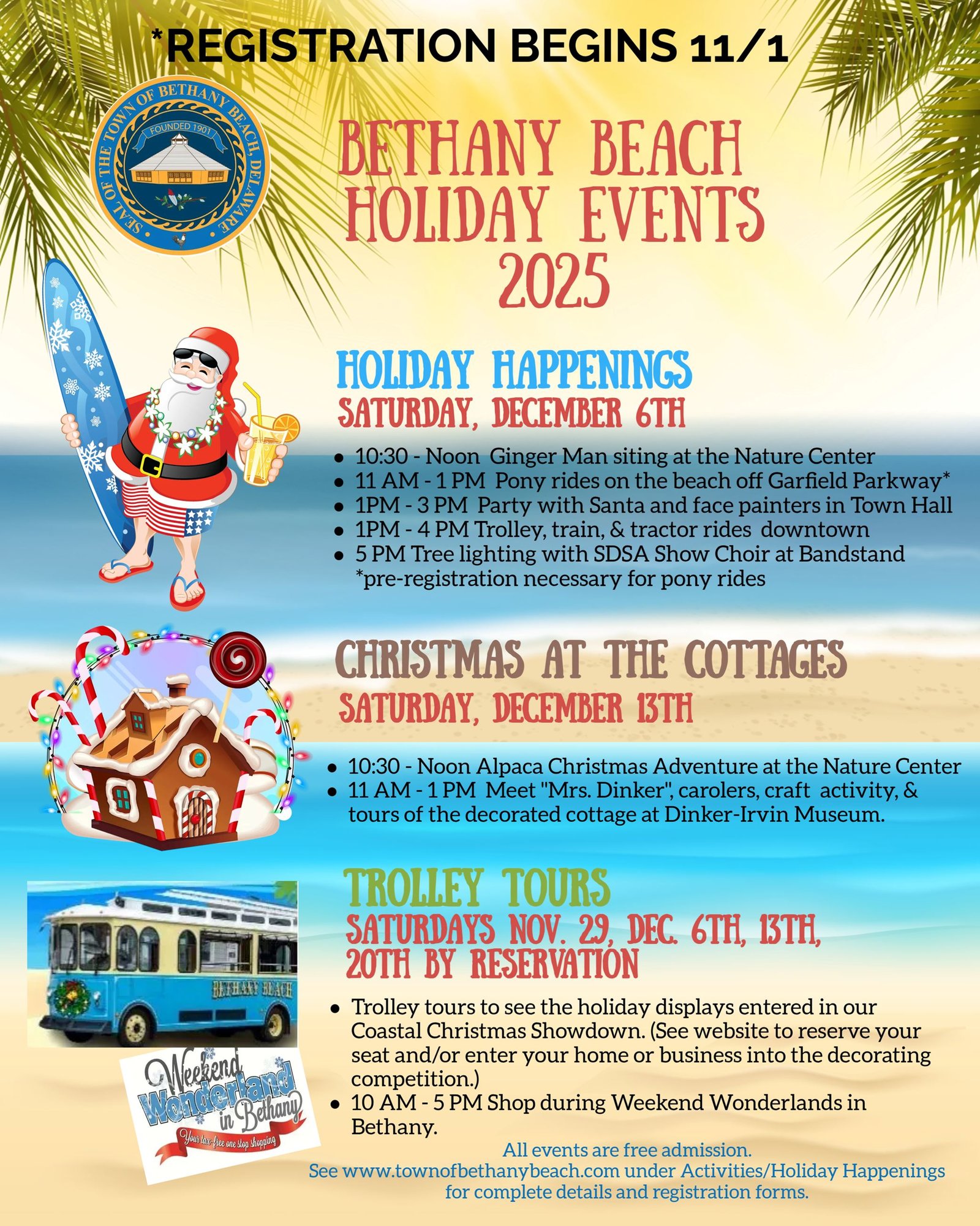 The 2025 Holiday Season is right around the corner and we have compiled a list of fun-filled activities in Bethany Beach and many surrounding areas! Whether you are looking for food, drinks, a family-friendly activity, or all of the above, look no further to find Holiday activities that check all of your boxes. Be sure to check back as we will continue updating this list: